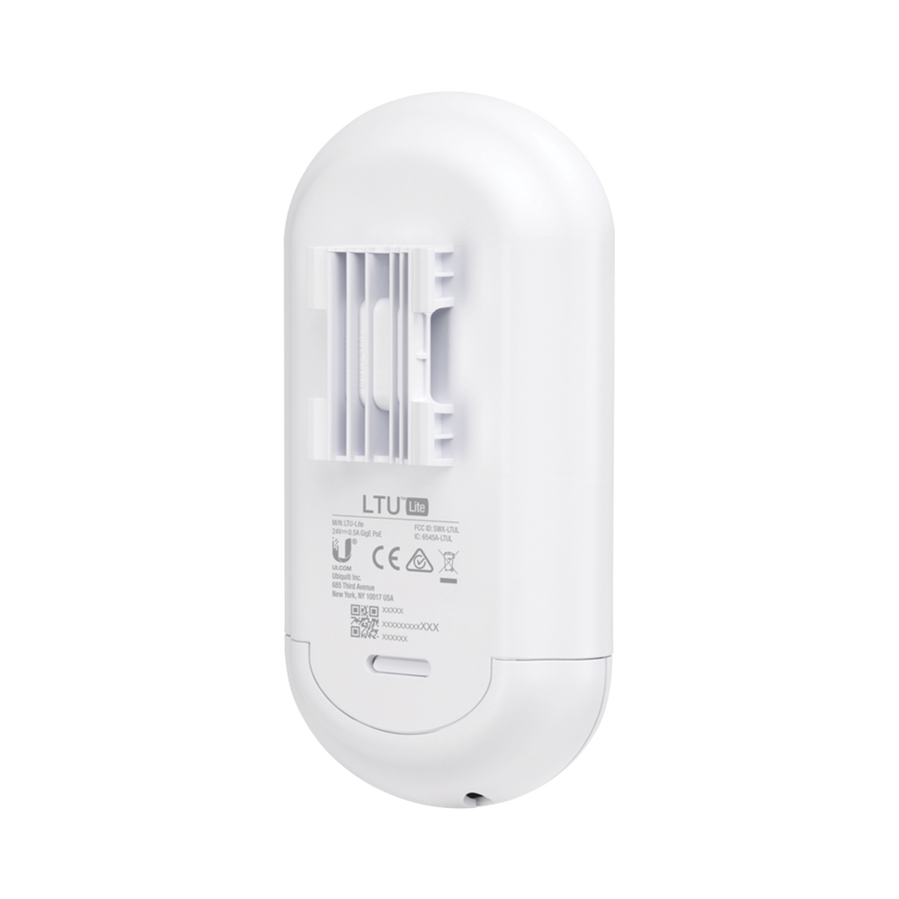 El Ubiquiti LTU-Lite es un cliente LTU compacto que opera en la banda de 5 GHz, ofreciendo una antena integrada de 13 dBi y velocidades de hasta 900 Mbps. Utiliza la tecnología LTU propietaria para un rendimiento superior en redes punto a multipunto (PtMP).