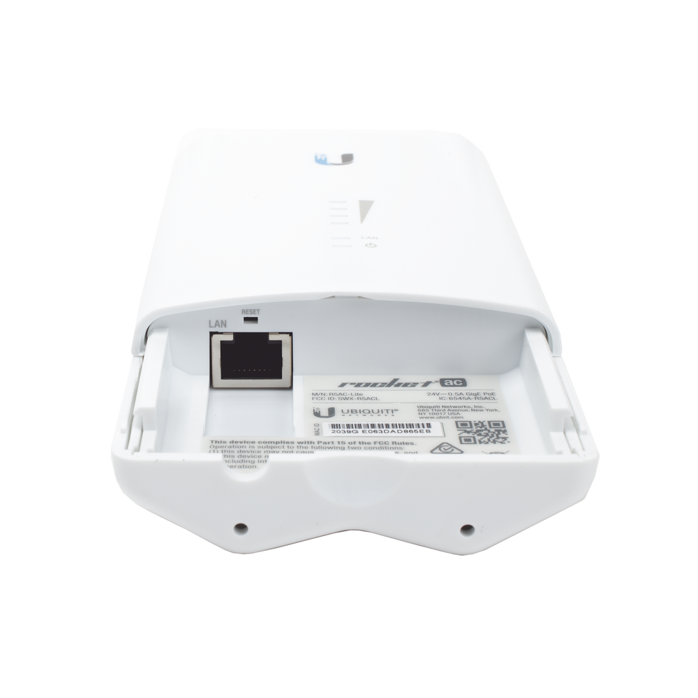 El Rocket 5ac Lite (R5AC-LITE) de Ubiquiti Networks es un punto de acceso diseñado para enlaces punto a punto (PtP) y punto a multipunto (PtMP) en la banda de 5 GHz. Utiliza la tecnología airMAX® ac para ofrecer un rendimiento superior con velocidades de hasta 500+ Mbps y capacidad para más de 50 clientes. Su carcasa resistente está diseñada para soportar condiciones exteriores adversas.