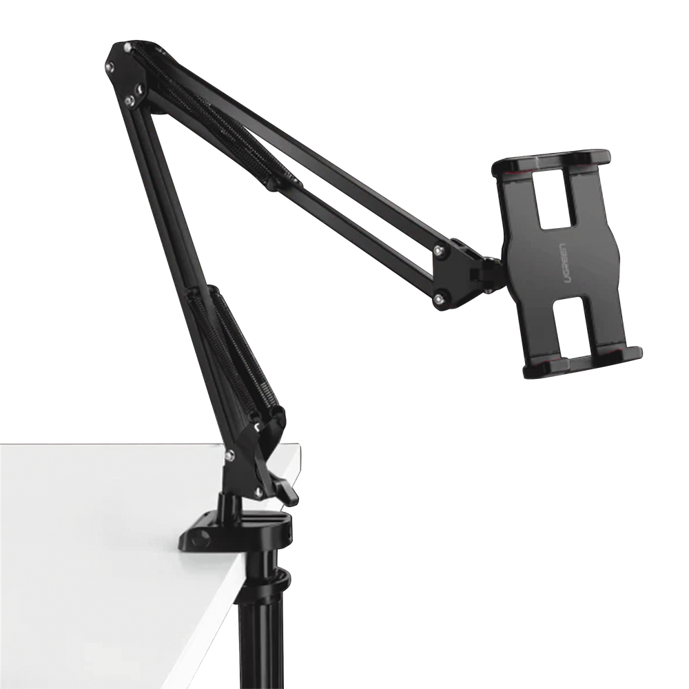 Soporte para Tableta con Brazo tipo Perezoso / Brazo Ajustable y Cabezal de 360° / 3 Perillas de Ajuste / Soporta dispositivos de 4” a 12.9” de hasta 1.5 KG / ABS + Metal de Alta Calidad.