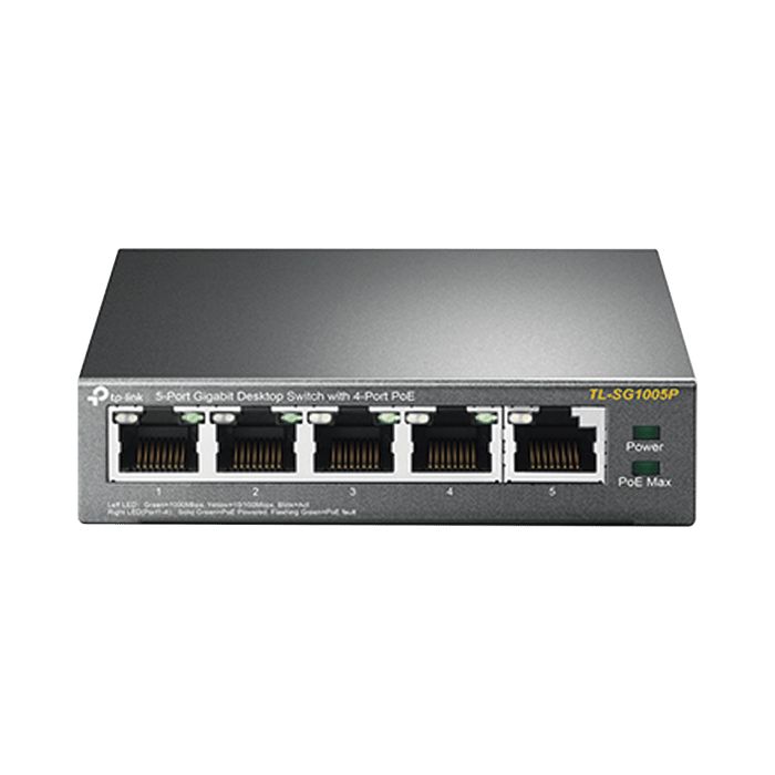 El TP-Link TL-SG1005P es un switch Gigabit Ethernet de alto rendimiento con 5 puertos, ideal para hogares y oficinas que requieren una conectividad rápida y confiable. Con 4 puertos PoE (Power over Ethernet), este switch permite alimentar dispositivos como cámaras de seguridad IP, puntos de acceso Wi-Fi y teléfonos VoIP a través del mismo cable de red, lo que simplifica la instalación y reduce la cantidad de cables necesarios.